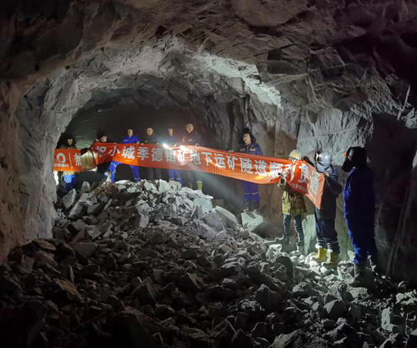 2020年12月25日,在吉林天池鉬業有限公司的盛邀與主持下,吉林省國資委、長春黃金設計院、陜建有色、舒蘭市安監局和公安局、兗州中材建設有限公司舒蘭分公司等單位領導參加了小城季德鉬礦地下運礦隧道順利貫通慶典,為慶祝2021年元旦送上了一份厚禮和祝福。  小城季德鉬礦地下運礦隧道貫通儀式 2020年12月22日凌晨1點28分,伴隨著隧道內最后一聲巨響,吉林天池鉬業有限公司小城季德鉬礦運礦隧道安全順利貫通。 2020年4月17日,隧道進口施工隊正式進入施工現場。在經歷了十余天的場平,基建,架設高壓線等措施后,生活區正常運營。在5月8日隧道口明洞施工前期準備時,舒蘭市成為高風險疫情防控區,嚴格控制人員出入。一直到6月下旬,隧道洞口才正式施工。 洞內施工是在無巖土地質資料,無確定施工圖紙,無地下水文資料的情況下進行施工的。專業技術人員只能依靠邊掘進邊觀察地質情況進行施工布置,給施工增加了不小難度。由于技術人員的技術過硬,才使得在掘進過程中出現的頂板砂巖冒頂現象迅速得到控制,并在安全的情況下順利的通過了砂巖破碎區和Ⅲ.Ⅳ級圍巖區,直至安全順利貫通。  此次隧道順利貫通是在兗州中材建設有限公司領導的關心與幫助下,尤其在閆永平副總工每月來隧道現場的技術指導下,在舒蘭分公司全體工作人員的共同努力下,也在設計院及業主按地質結構變化而隨時變更施工方案的配合下,完全達到了隧道設計參數要求。