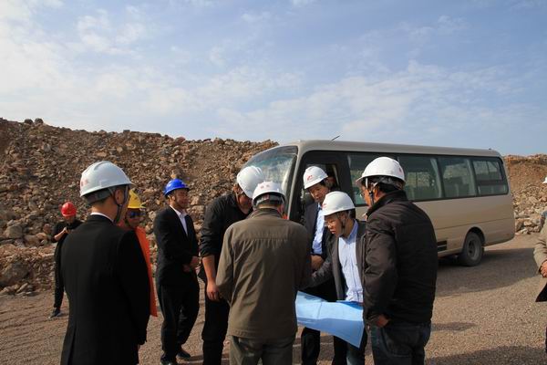 安監局領導及專家組對礦山施工現場、運礦道路、基建平臺等進行現場查看驗收。