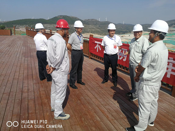 9月24日上午,中國(guó)建材股份副總裁、黨委委員蘇逵在公司總經(jīng)理柯升、黨委書記王中秋的陪同下,對(duì)平陰分公司的“不忘初心、牢記使命”主題教育活動(dòng)開(kāi)展情況進(jìn)行調(diào)研。平陰山水黨委書記侯福存、總經(jīng)理助理江帥、分公司經(jīng)理劉占中參加陪同。 蘇逵一行首先參觀了礦山,在260觀景平臺(tái)與業(yè)主領(lǐng)導(dǎo)進(jìn)行了工作交流,平陰山水總經(jīng)理助理江帥向蘇逵介紹了平陰山水基本情況,并對(duì)水泥廠后續(xù)規(guī)劃做了詳細(xì)介紹。分公司經(jīng)理劉占中向蘇總詳細(xì)介紹了礦山工作開(kāi)展情況,