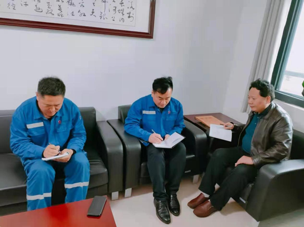 2021年4月26日,公司黨委書記、總經理柯升,副書記何芳訓,黨群部部長李增光,來到蘭陵分公司上黨史教育課和調研黨員發展工作。