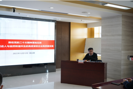 郭正勇從三方面進(jìn)行了深入闡述和精彩宣講。一是深刻理解二十大報(bào)告中關(guān)于推動(dòng)綠色發(fā)展,促進(jìn)人與自然和諧共生的深刻內(nèi)涵;二是全面把握人與自然和諧共生新任務(wù),聚力踐行央企綠色發(fā)展使命擔(dān)當(dāng);三是聚焦近期工作,強(qiáng)化擔(dān)當(dāng)落實(shí)。