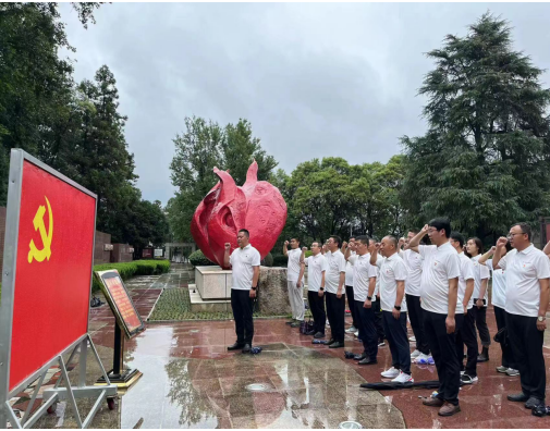 29日,共同前往紅色大別山,在鄂豫皖蘇區(qū)首府革命烈士紀(jì)念館中,以傾盆大雨寄哀思,拾級(jí)而上,同志們身著白色上衣整齊列隊(duì)肅立在革命烈士紀(jì)念碑廣場(chǎng),面朝莊嚴(yán)肅穆的紀(jì)念碑,在宋道明同志的帶領(lǐng)下,全體低頭默哀,沉痛哀悼英勇?tīng)奚牧沂浚⒐餐蛄沂烤传I(xiàn)花籃,同志們莊重的舉起右手,面對(duì)鮮紅的黨旗,“我志愿加入中國(guó)共產(chǎn)黨,擁護(hù)黨的綱領(lǐng)……永不叛黨。”在鏗鏘有力的誓詞中,重溫入黨初心,同志們初心受到洗禮,理想信念更加堅(jiān)定。